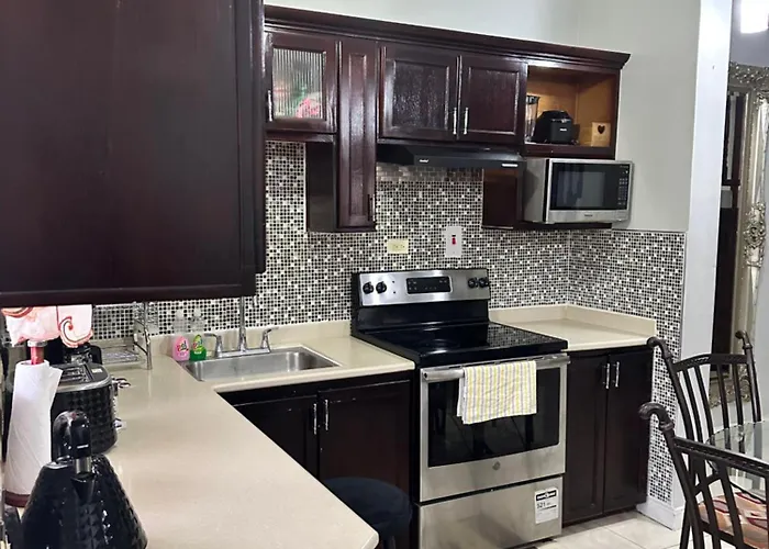 Opções de auto-atendimento, como chaleira elétrica, refrigerador e utensílios de cozinha estão disponíveis neste apartamento para os hóspedes utilizarem. São necessários 23 minutos de carro do Escape At The Oasis- New Kingston Area -24Hrs Security, Elevator, Water Heater, Wifi Apartamento para o Aeroporto Internacional Norman Manley.